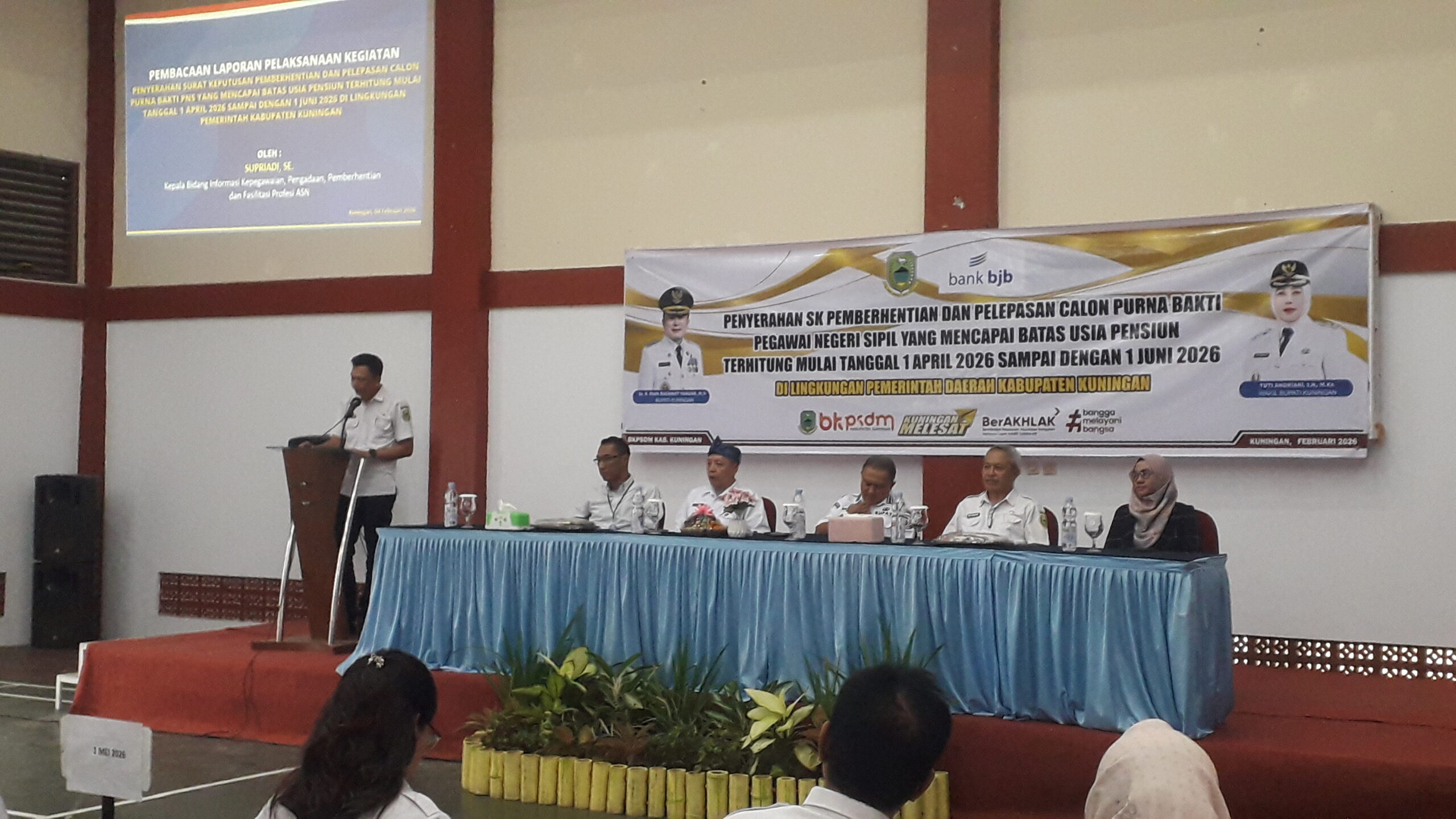 Penyerahan SK dilakukan langsung oleh Bupati Kuningan, Dr. H. Dian Rachmat Yanuar, M.Si, dalam kegiatan yang berlangsung di Aula Graha Sajati BKPSDM Kabupaten Kuningan, Rabu (4/2/2026).