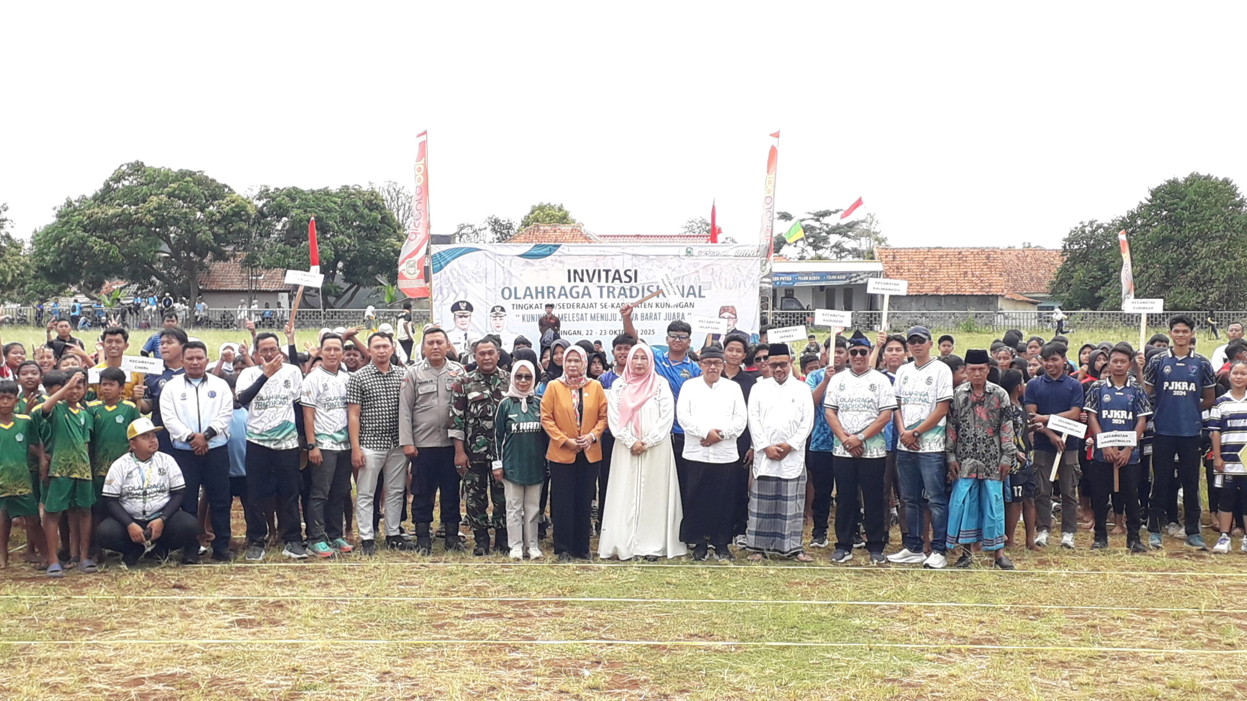 ELTVSATU ||| KUNINGAN.Rabu 22 Oktober 2025 bertempat di lapang bola Windusengkahan mendadak ramai,dimana para putra putri dari 30 kecamatan Sekolah Dasar atau Sederajat berkumpul untuk mengikuti Invitasi Olahraga Tradisional yang diselenggarakan oleh Disporapar.Wakil Bupati Tuti Adriani membuka acara invitasi olahraga tradisional serta turut hadir Wakil Ketua DPRD Ibu Saw Tresna,Kadispora,Kadisdik yang mewakilkan,Forkopimcam kecamatan Kuningan,DR. Iip Firmana,M.Pd dari Universitas Muhammadiyah.