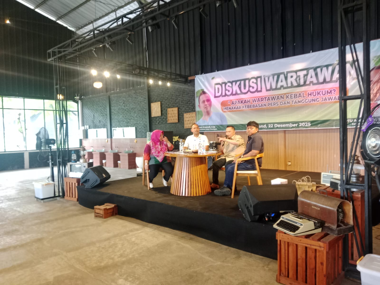 ELTV SATU ||| KUNINGAN – Apakah Wartawan Kebal Hukum? Tema yang diambil dalam acara diskusi wartawan yang digelar di Woodland, Jalan Ragasakti No.130, Desa Setianegara, Kecamatan Cilimus, Kabupaten Kuningan, Senin (22/12/2025). Kegiatan ini menjadi ruang dialog terbuka antara insan pers dan kepolisian untuk menyamakan persepsi terkait kebebasan pers dalam koridor hukum.