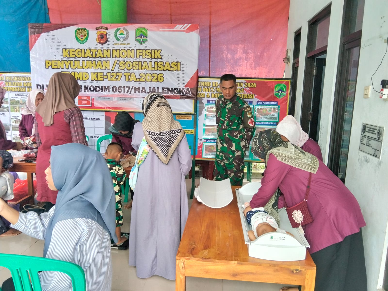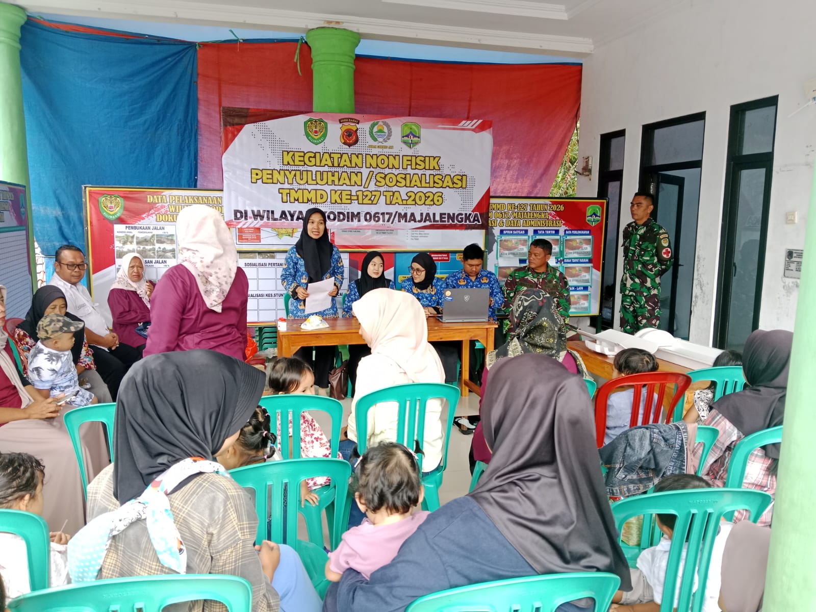 Kegiatan tersebut menghadirkan penyuluh dari Puskesmas Sindangwangi yang didampingi Poskes Kodim 0617/Majalengka serta personel Koramil 1709/Rajagaluh. Penyuluhan ini bertujuan meningkatkan pemahaman para ibu hamil dan orang tua balita mengenai pentingnya asupan gizi seimbang guna mencegah stunting sejak dini.