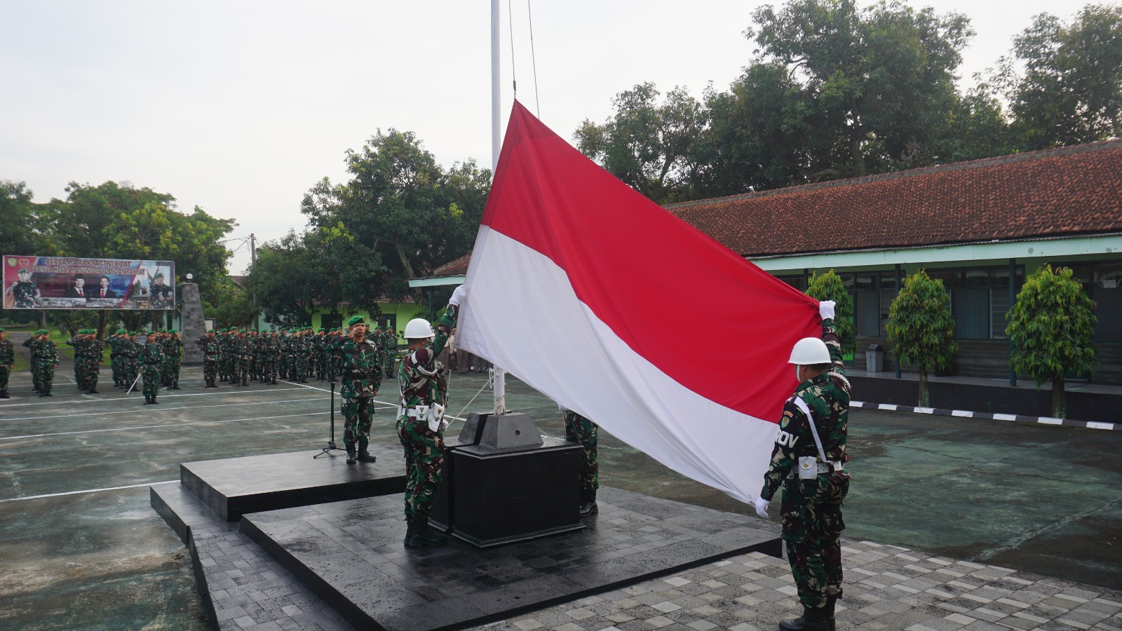 ELTV SATU ||| Majalengka, Jawa Barat – Kepala Staf Kodim (Kasdim) 0617/Majalengka, Mayor Inf Sugianto memimpin langsung pelaksanaan upacara bendera yang berlangsung khidmat di Lapangan Makodim 0617/Majalengka, Jalan KH Abdul Halim No. 403, Kelurahan Tonjong, Kabupaten Majalengka, Senin (6/4/2026).