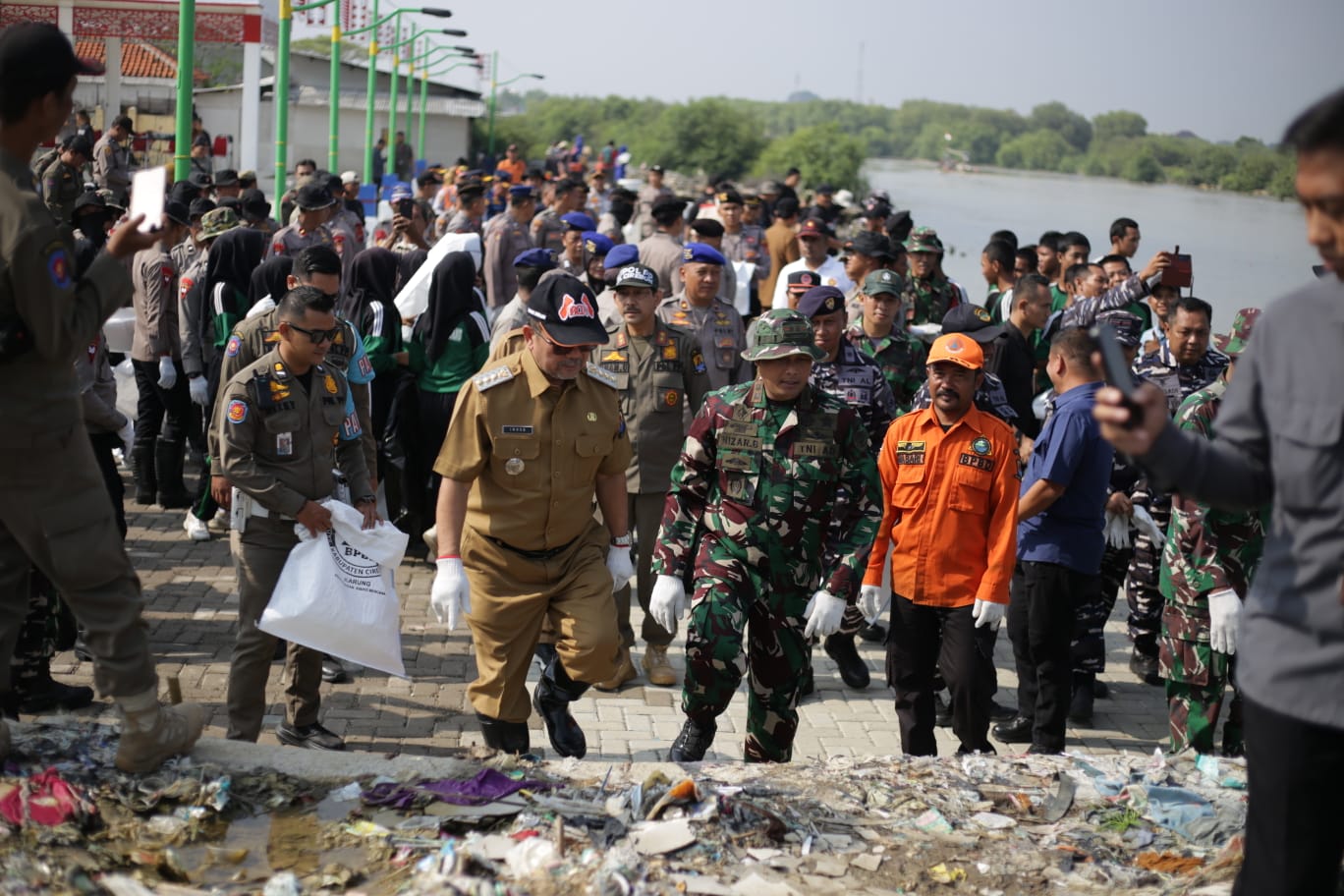 “Pada hari ini kami dari pemerintah daerah bersama Forkopimda, TNI, Polri, kejaksaan, pengadilan, hingga unsur kecamatan melaksanakan bersih-bersih pantai di Gebang,” ujar Imron saat ditemui di sela kegiatan.