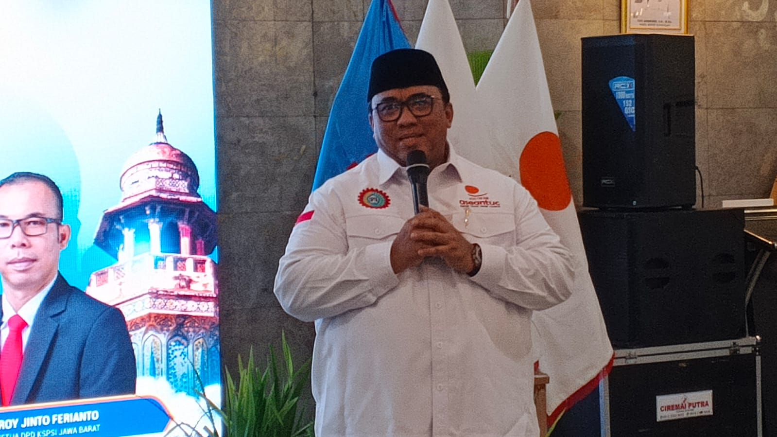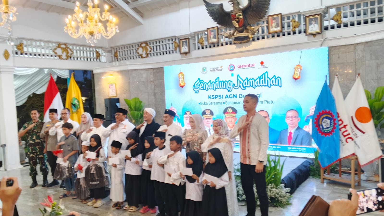 ELTV SATU ||| KUNINGAN– Bupati Kuningan menghadiri kegiatan Senandung Ramadan dan KSPSI AGNM Berbagi yang dirangkaikan dengan peringatan Hari Ulang Tahun ke-53 Konfederasi Serikat Pekerja Seluruh Indonesia (KSPSI) di Pendopo Kabupaten Kuningan,pada Hari Senin(9-3-2026).