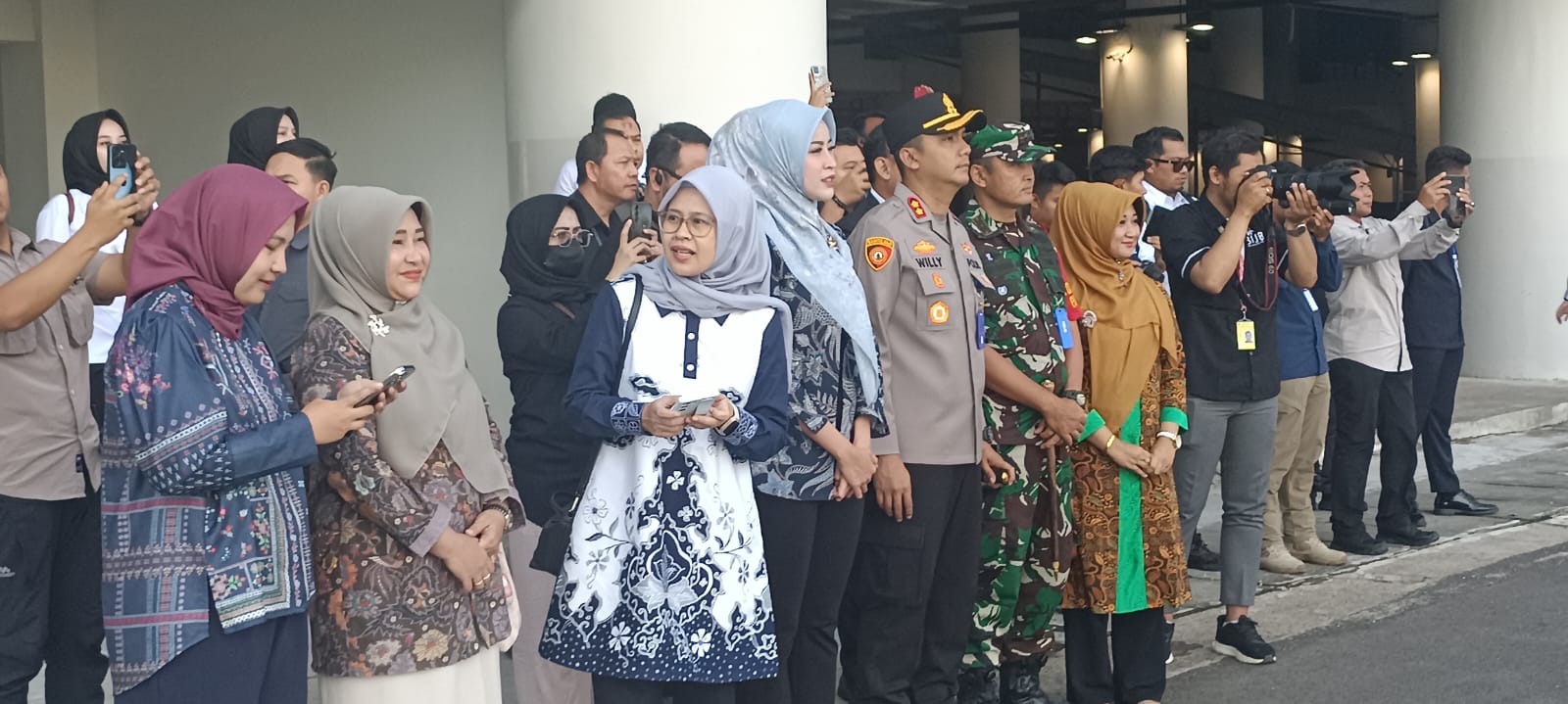 ELTV SATU ||| Majalengka – Komandan Kodim 0617/Majalengka Letkol Inf Fahmi Guruh Rahayu bersama istri, Ny. Adhita Fahmi Guruh Rahayu, turut menyambut kedatangan Ibu Wakil Presiden Republik Indonesia, Selvi Gibran Rakabuming, beserta rombongan di Bandara Internasional Jawa Barat (BIJB) Kertajati, Kabupaten Majalengka, pada Kamis (30/10/2025).