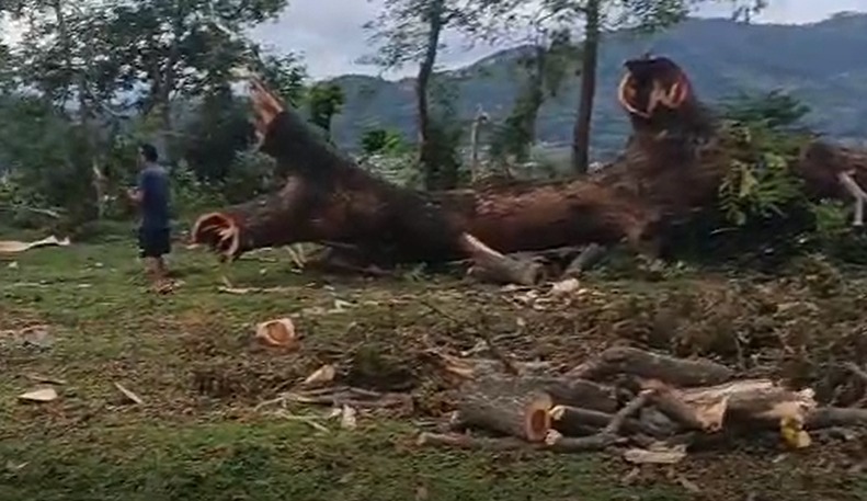 “Pemdes tidak pernah mengajak dialog atau memberi tahu akan adanya penebangan pohon tersebut,” ujarnya.