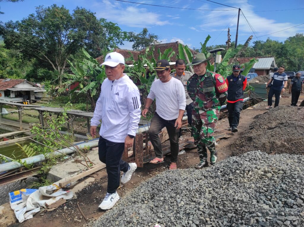 Bupati datang bersama Sekda Uu Kusmana, jajaran DPUTR, BPBD, serta unsur Forkopimcam Ciniru untuk memastikan kondisi lapangan sekaligus langkah percepatan penanganan pascabanjir.