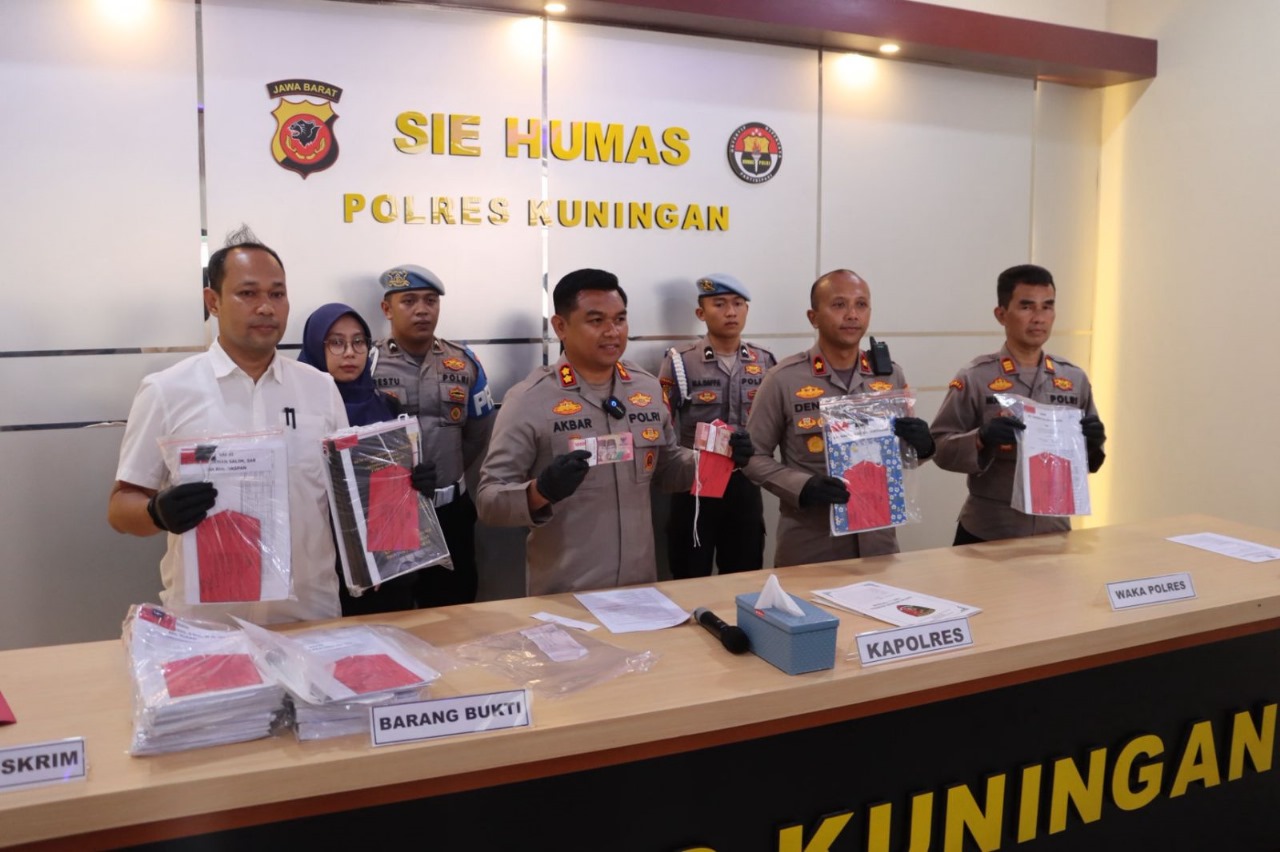 Kapolres Kuningan menegaskan bahwa perbuatan para tersangka melanggar Pasal 2, 3, dan 8 Undang-Undang Nomor 31 Tahun 1999 tentang Pemberantasan Tindak Pidana Korupsi sebagaimana telah diubah dengan Undang-Undang Nomor 20 Tahun 2001, serta Pasal 55 dan 64 KUHP.