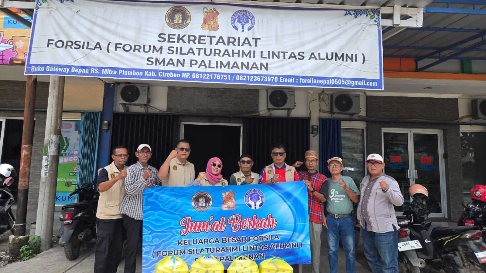 ELTV SATU ||| CIREBON – Forum Silaturahmi Lintas Angkatan (Forsila) alumni SMA Negeri Palimanan kembali menunjukkan kepeduliannya kepada sesama melalui kegiatan sosial bertajuk Jum’at Berkah. Kegiatan rutin yang digelar setiap Jumat terakhir di setiap bulan ini dilaksanakan di depan GOR Watu Belah, Kecamatan Plered, Kabupaten Cirebon, Jumat (31/10/2025).