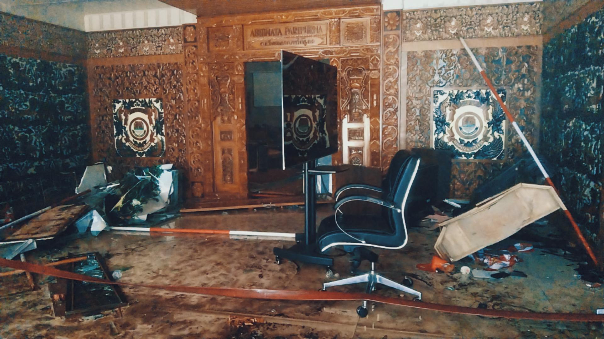 “Banyak yang bawa keluar TV, kursi, bahkan besi pagar pun diambil,” ungkapnya.