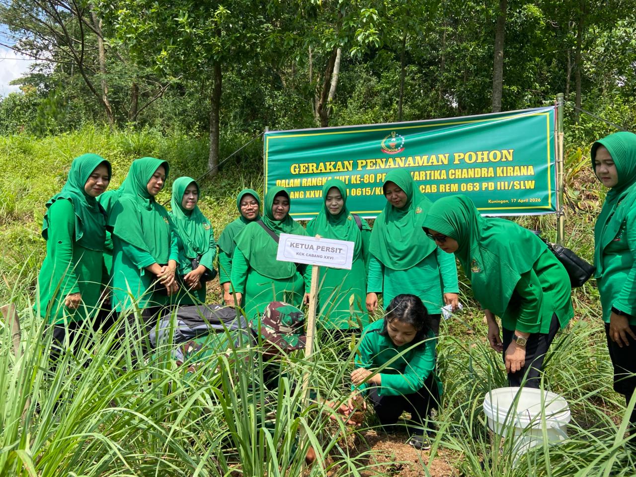 ELTV SATU || KUNINGAN — Dalam rangka memperingati Hari Ulang Tahun (HUT) ke-80 Persit Kartika Chandra Kirana, digelar kegiatan penanaman pohon di kawasan Objek Wisata Kebun Raya Kuningan (KRK), Desa Padabeunghar, Kecamatan Pasawahan, Kabupaten Kuningan, Jumat (17/4/2026).