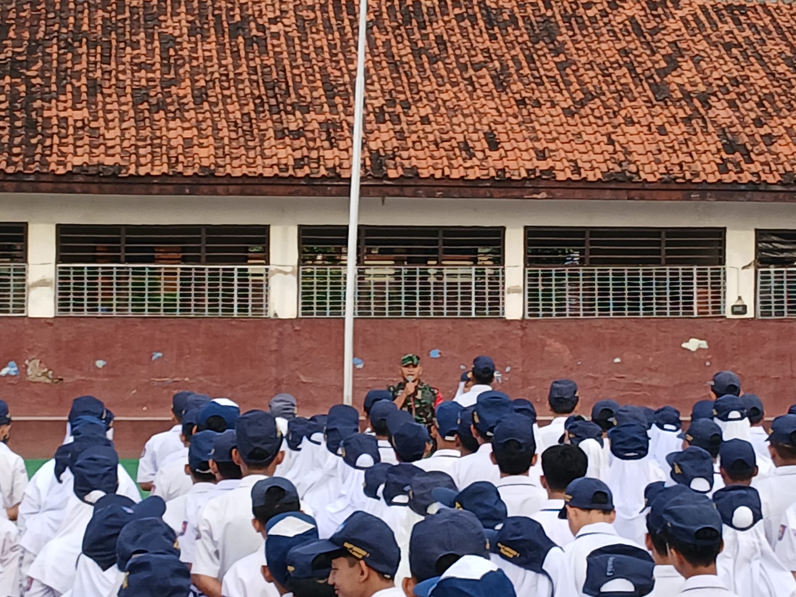 ELTV SATU ||| KUNINGAN — Dalam upaya menanamkan nilai-nilai kedisiplinan, tanggung jawab, dan cinta tanah air sejak dini, Danramil 1510/Cilimus, Kapten Inf Saniyo, bersama Bintara Pembina Desa (Babinsa) Desa Bojong melaksanakan kegiatan pembinaan melalui upacara bendera di SMPN 1 Cilimus, Desa Bojong, Kecamatan Cilimus, Kabupaten Kuningan, Senin (6/4/2026).