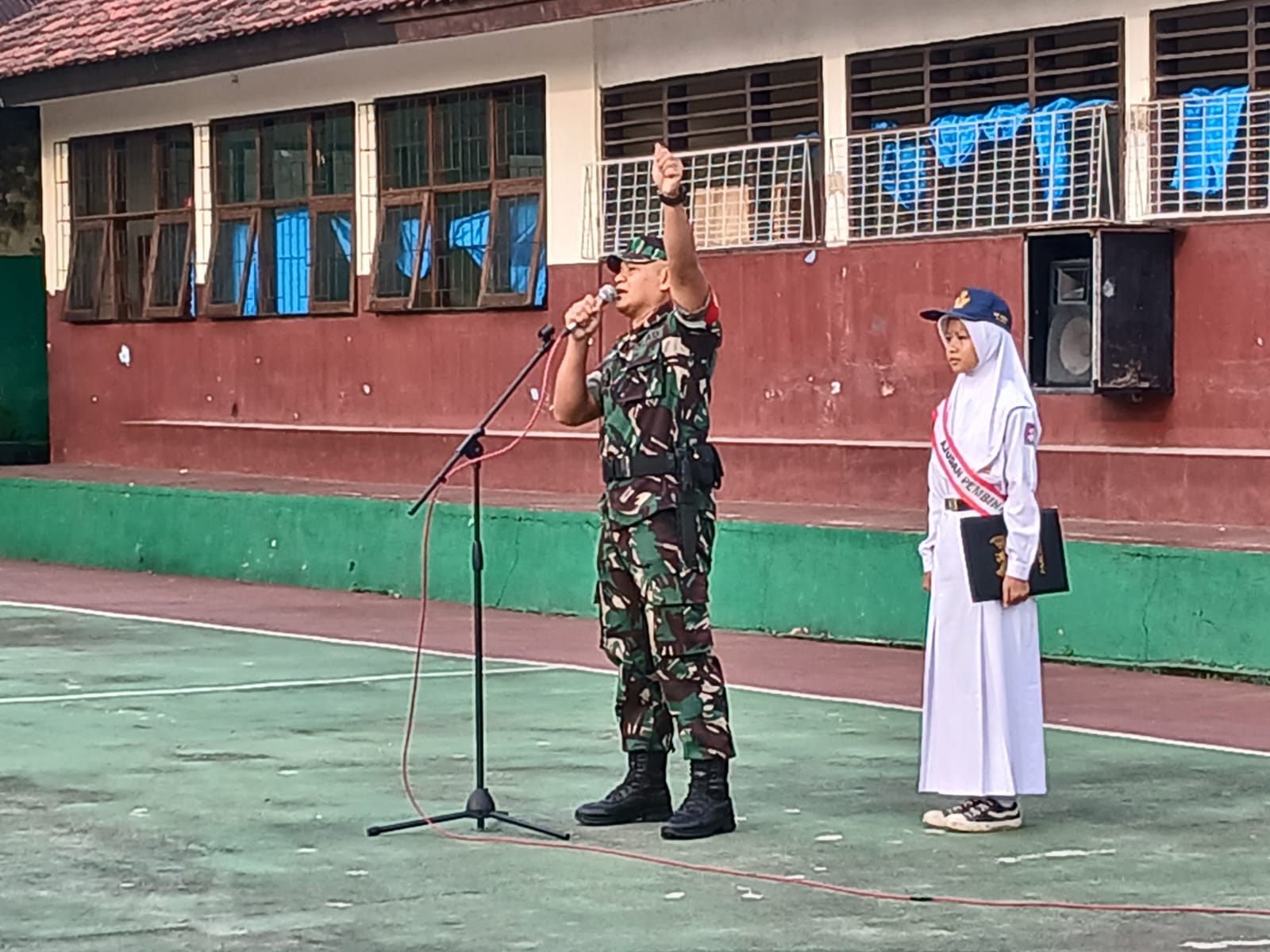 ELTV SATU ||| KUNINGAN — Dalam upaya menanamkan nilai-nilai kedisiplinan, tanggung jawab, dan cinta tanah air sejak dini, Danramil 1510/Cilimus, Kapten Inf Saniyo, bersama Bintara Pembina Desa (Babinsa) Desa Bojong melaksanakan kegiatan pembinaan melalui upacara bendera di SMPN 1 Cilimus, Desa Bojong, Kecamatan Cilimus, Kabupaten Kuningan, Senin (6/4/2026).