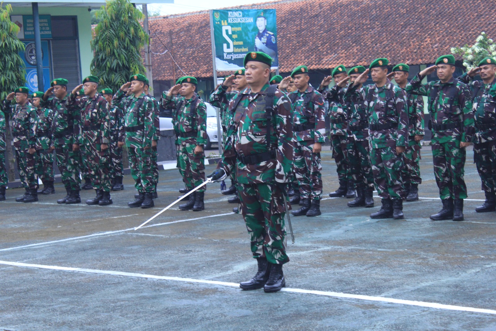 ELTV SATU ||| Majalengka, Jawa Barat – Kepala Staf Kodim (Kasdim) 0617/Majalengka Mayor Inf Sugianto memimpin langsung pelaksanaan upacara bendera yang berlangsung khidmat di Lapangan Makodim 0617/Majalengka, Jalan KH Abdul Halim No. 403, Kelurahan Tonjong, Kabupaten Majalengka, Senin (9/2/2026).