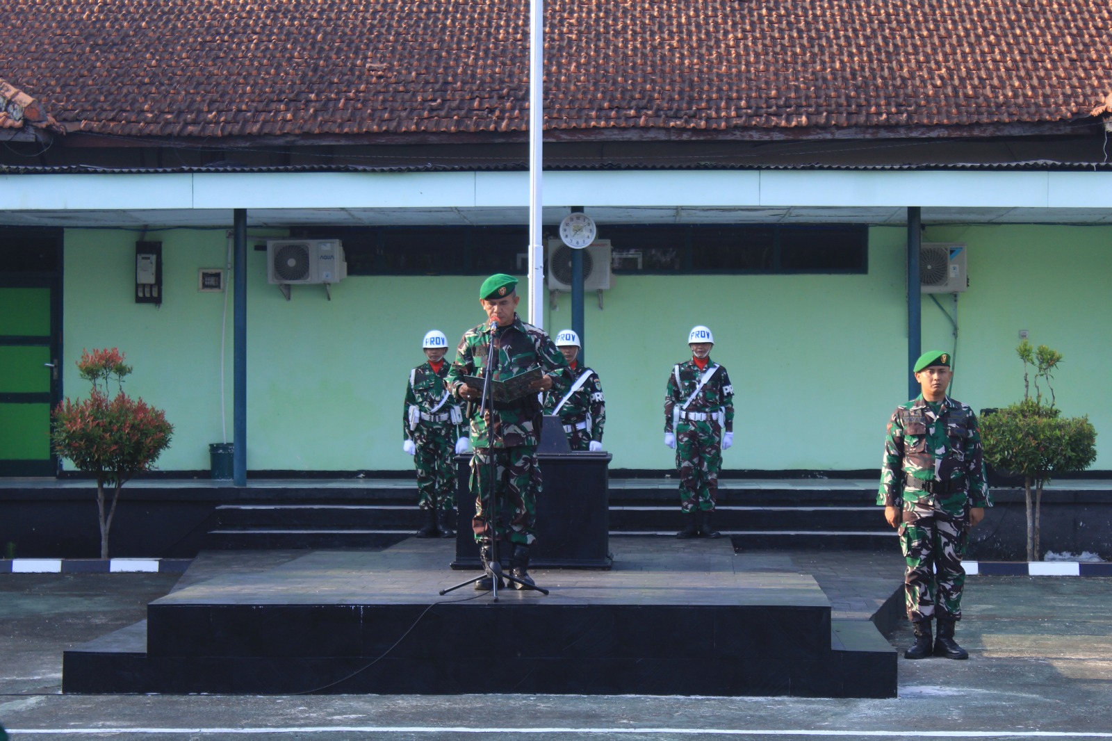 Mayor Inf Sugianto memastikan setiap rangkaian kegiatan berjalan tertib, mulai dari pengibaran bendera Merah Putih hingga amanat upacara. Kehadirannya langsung sebagai Irup menegaskan komitmen pimpinan dalam membina kedisiplinan dan semangat nasionalisme di lingkungan satuan.