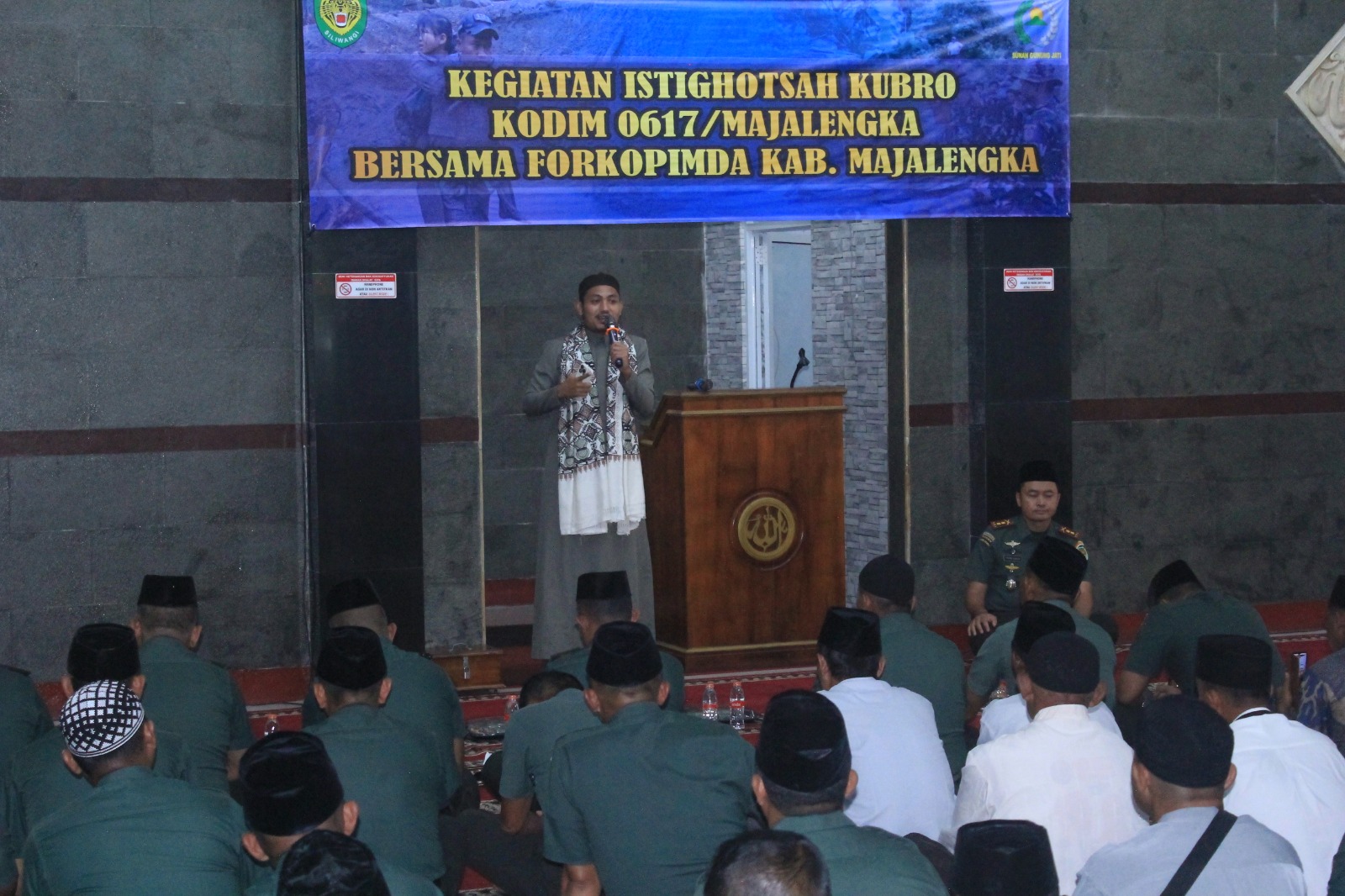 Dalam sambutannya, Dandim 0617/Majalengka, Letkol Inf Fahmi Guruh Rahayu, menyampaikan bahwa kegiatan istighosah merupakan momentum penting untuk memperkuat keimanan sekaligus bentuk kepedulian terhadap saudara sebangsa yang mengalami bencana.