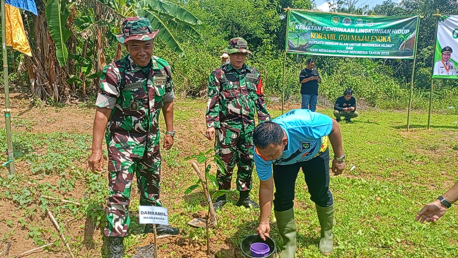 ELTV SATU ||| Majalengka – Koramil 1701/Majalengka Kodim 0617/Majalengka menggelar kegiatan Penanaman Pohon Serentak Program Pembinaan Lingkungan Hidup TA 2025 bertempat di kawasan Patilasan Nyi Rambut Kasih, Kelurahan Sindangkasih, Kecamatan Majalengka, Kabupaten Majalengka, Rabu (26/11/2025).