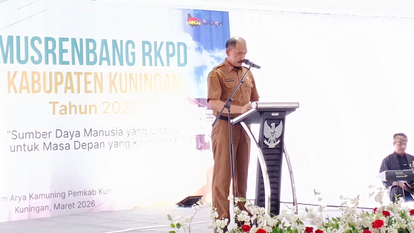 ELTV SATU ||| KUNINGAN — Pemerintah Kabupaten Kuningan mulai mematangkan arah pembangunan daerah tahun 2027 melalui Musrenbang RKPD 2027,pada Hari Selasa (31-3-2026) bertempat di Ballroom Arya Kamuning KIC lantai 3, dengan menyoroti sejumlah isu strategis seperti kemiskinan, infrastruktur, kualitas sumber daya manusia (SDM), tata kelola pemerintahan, hingga perubahan iklim.