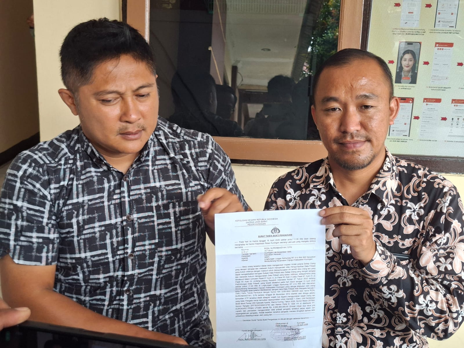 ELTV SATU || KUNINGAN — Dugaan pemalsuan identitas dalam pembelian kendaraan mewah jenis Ferrari menggemparkan publik Kuningan. Seorang guru honorer, Rizal Nurmadiansyah, S.Pd, resmi melaporkan kasus tersebut ke Satreskrim Polres Kuningan pada Kamis (16/4/2026). Ia datang didampingi Yusuf Dandi Asih dari Masyarakat Peduli Kuningan (MPK).