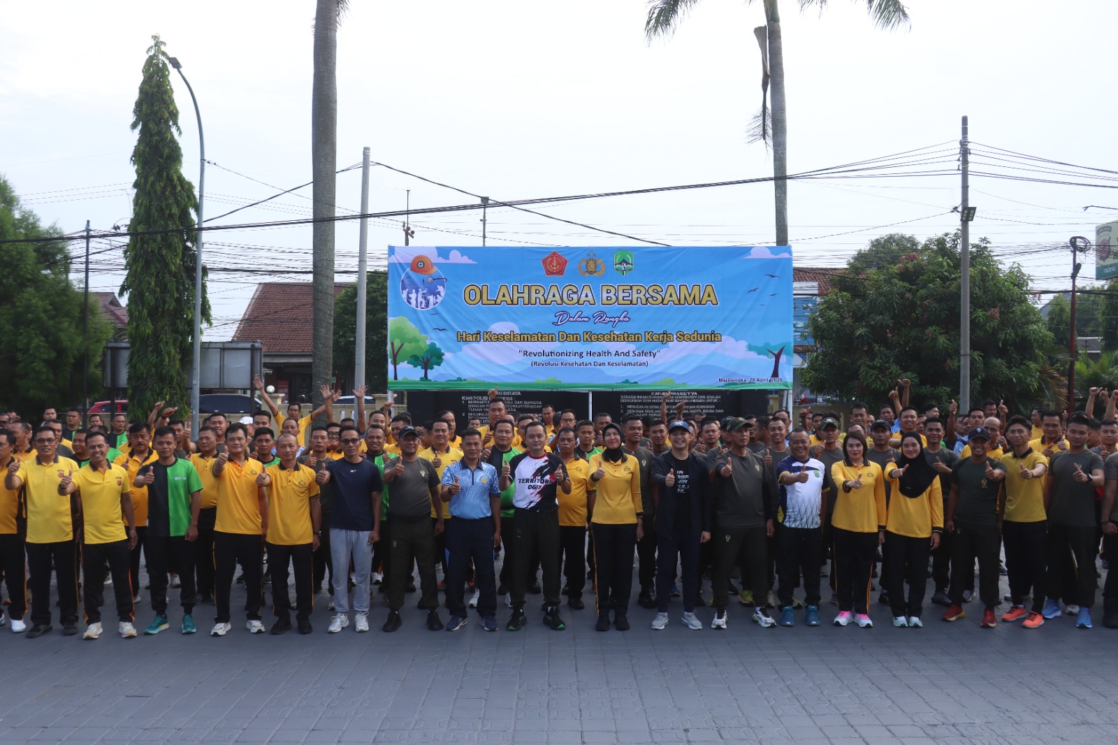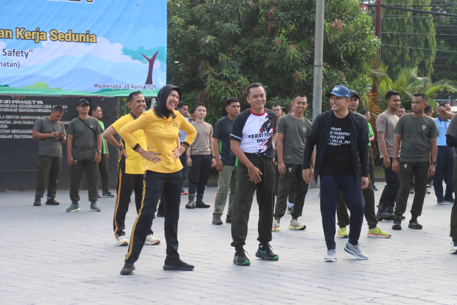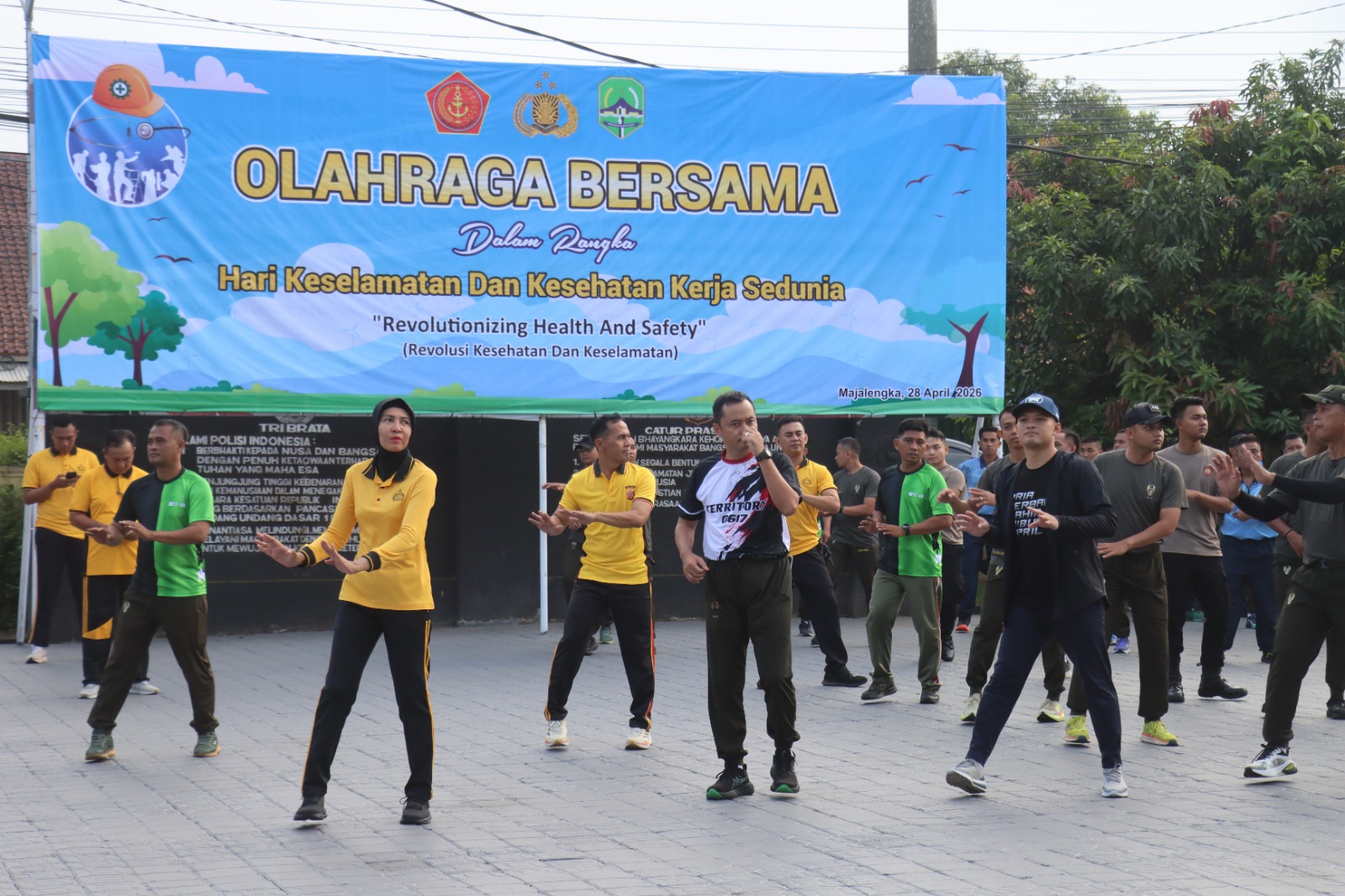 ELTV SATU ||| Majalengka – Dalam rangka memperingati Hari Keselamatan & Kesehatan Kerja (K3) Sedunia yang jatuh pada 28 April 2026, para aparat TNI-Polri serta jajaran pemerintah Kabupaten Majalengka menggelar olahraga bersama di Lapangan Apel Polres Majalengka, Jalan KH Abdul Halim No. 518, Kelurahan Cigasong, Kecamatan Cigasong, Kabupaten Majalengka, Selasa (28/4/2026).