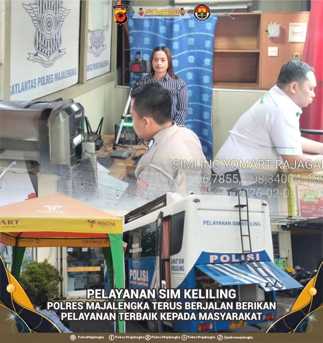 Pelayanan SIM Keliling ini dilaksanakan pada Senin, 9 Februari 2026, bertempat di depan Yomart Kecamatan Rajagaluh, Kabupaten Majalengka. Kehadiran Simling bertujuan untuk memudahkan masyarakat dalam melakukan perpanjangan SIM tanpa harus datang langsung ke kantor Satpas.