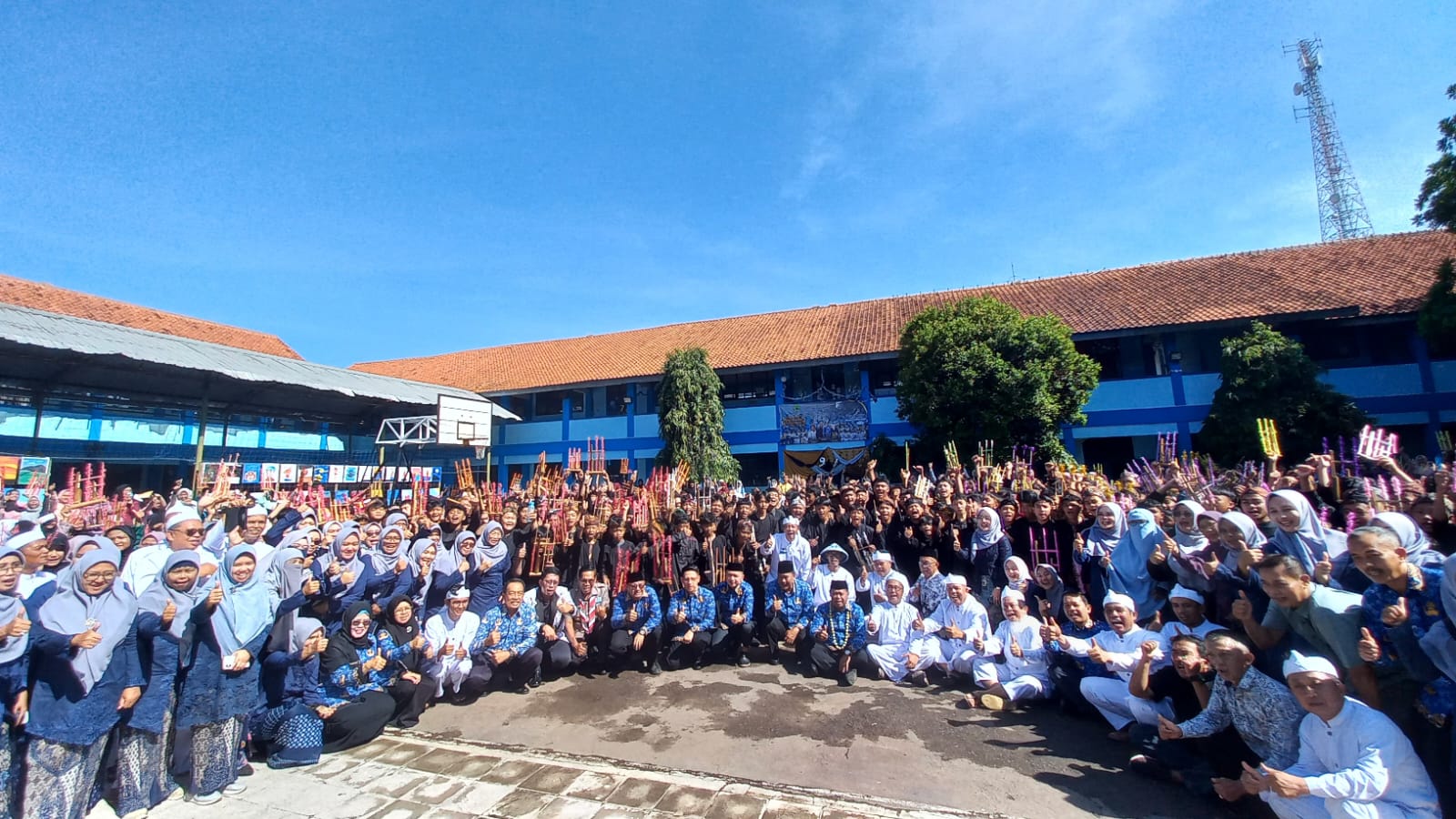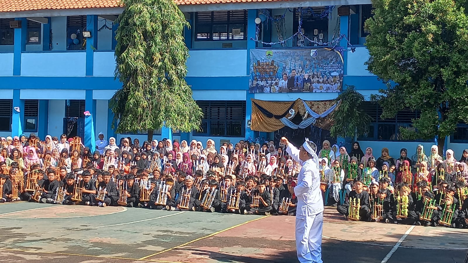ELTV SATU ||| Majalengka – Ratusan siswa siswi SMPN 1 Majalengka dengan semangat dan ceria memainkan Angklung di halaman sekolah yang di hadiri Bupati Majalengka, H.Eman Suherman, Senin (17/11/2025). Kegiatan ini merupakan moment peringatan Hari Angklung Sedunia