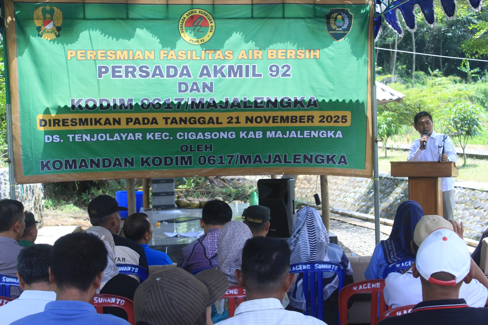 ELTV SATU ||| Majalengka – Persada Akmil 92 bersama Kodim 0617/Majalengka meresmikan fasilitas air bersih di Embung Sokalayar, Desa Tenjolayar, Kecamatan Cigasong, Majalengka, Jumat (21/11/2025). Peresmian dipimpin langsung Dandim 0617/Majalengka Letkol Inf Fahmi Guruh Rahayu.