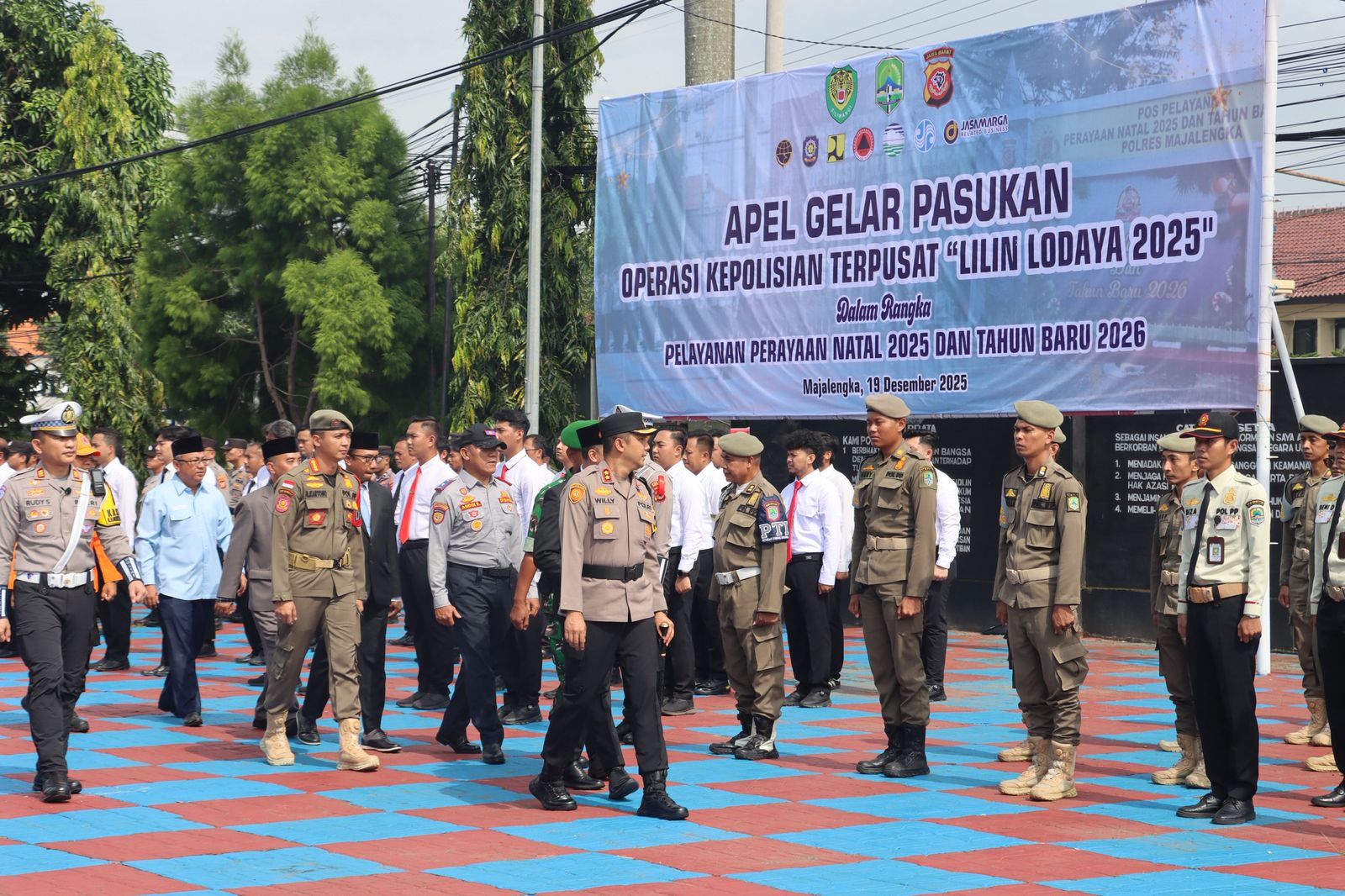 ELTV SATU ||| Majalengka – Pgs. Kepala Staf Kodim (Kasdim) 0617/Majalengka Kapten Arh Winarno menghadiri kegiatan Apel Gelar Pasukan Operasi Kepolisian Terpusat Lilin Lodaya 2025 dalam rangka pengamanan dan pelayanan Perayaan Natal 2025 dan Tahun Baru 2026 tingkat Kabupaten Majalengka. Kegiatan tersebut dilaksanakan di Lapangan Apel Polres Majalengka, Jalan KH Abdul Halim No. 518, Kelurahan Cigasong, Kecamatan Cigasong, Kabupaten Majalengka, Jumat (19/12/2025).