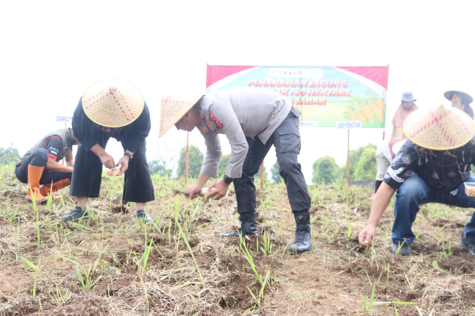 Kapolres Kuningan AKBP Ali Akbar,turut mengikuti penanaman jagung di Desa Gunungkeling, Kecamatan Cigugur Kabupaten Kuningan dengan luasan lahan mencapai 0,42 hektare. Kegiatan tersebut juga terhubung secara serentak dengan jajaran Polda Jabar.