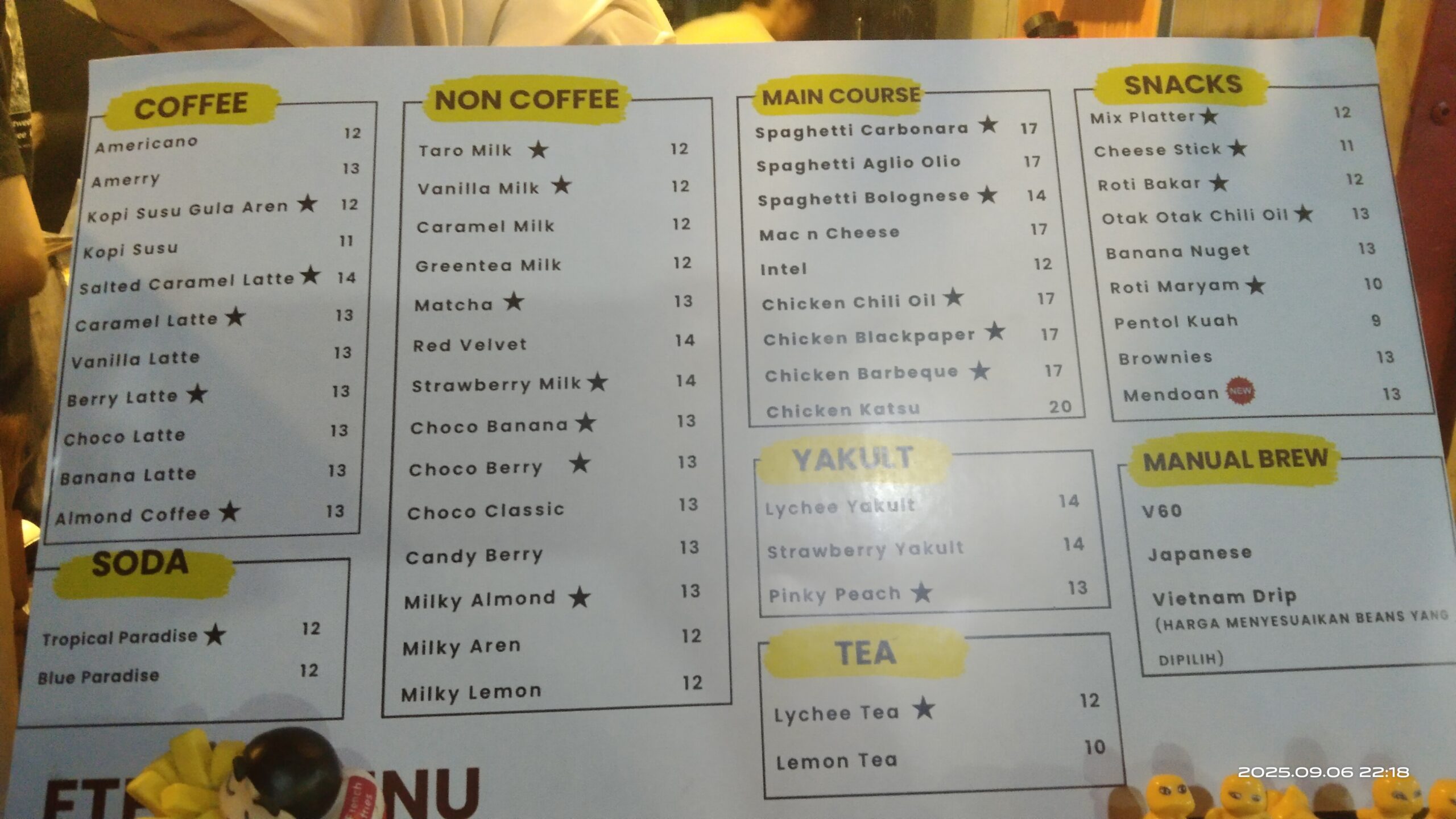 “Di sini salah satu tempat referensi untuk nongkrong malam sembari minum kopi dan nyemil. Situasinya nyaman dan menenangkan,” tuturnya.