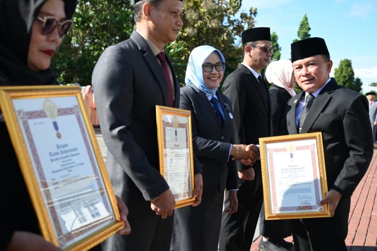 ELTVSATU ||| KUNINGAN – Berlangsung dengan suasana penuh khidmat, Upacara peringatan Hari Kesaktian Pancasila tingkat Kabupaten Kuningan digelar, Rabu (01/10/2025). Bupati Kuningan, Dr. H. Dian Rachmat Yanuar, Msi bertindak langsung sebagai Inspektur Upacara. Peserta Upacara terdiri dari unsur TNI, Polri, ASN, pelajar, dan organisasi kemasyarakatan.