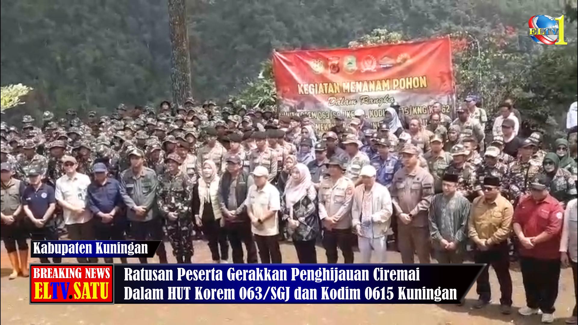 ELTV SATU ||| KUNINGAN –  memperingati Hari Menanam Pohon Indonesia dengan cara yang penuh makna. Dalam rangka HUT ke-76 Korem 063 Sunan Gunung Jati dan HUT ke-62 Kodim 0615 Kuningan, ratusan peserta berkumpul di Bumi Perkemahan Lamping Kidang, Desa Cisantana, untuk mengikuti kegiatan penanaman pohon massal di kaki Gunung Ciremai. Tidak kurang dari lima ratus peserta hadir, mulai dari unsur legislatif pusat, TNI, Polri, para rektor, komunitas lingkungan, hingga masyarakat Palutungan. Kamis (11/12/2025)