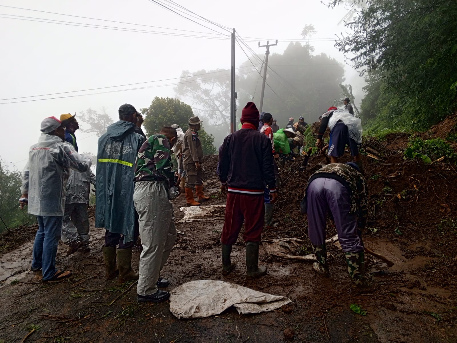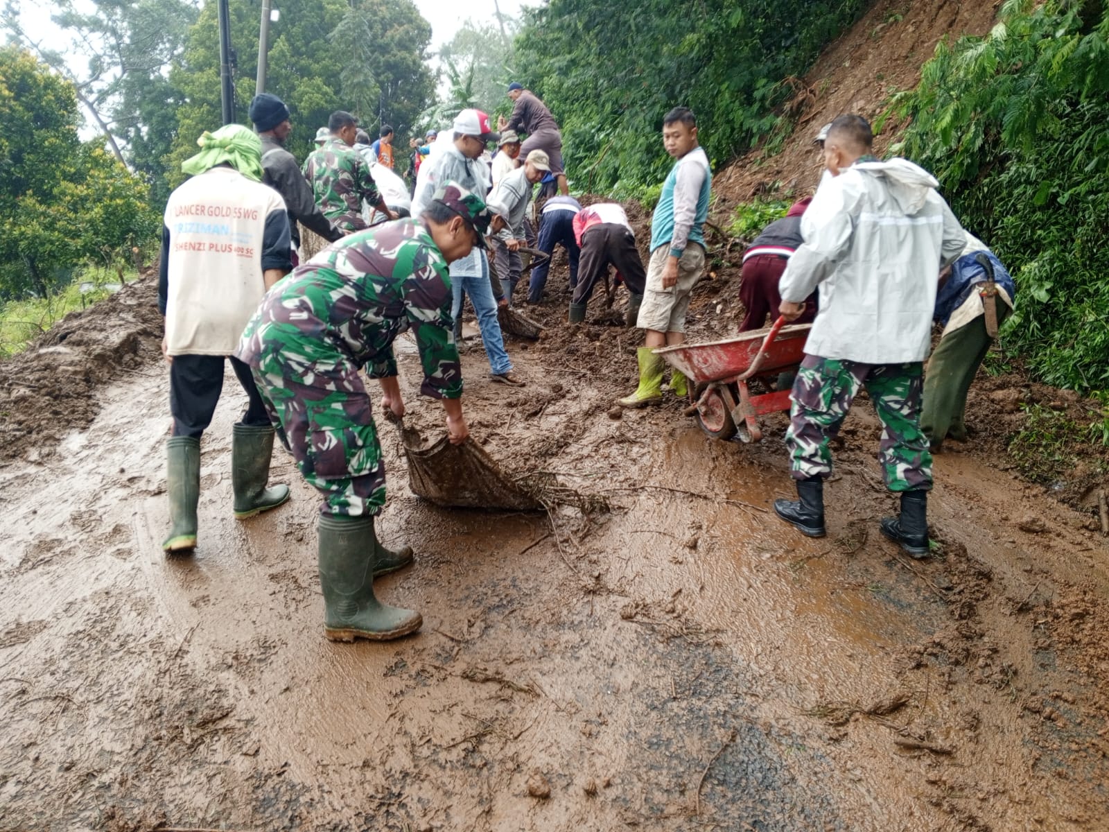 Anggota Koramil 1703/Argapura yang dipimpin Babinsa setempat segera turun ke lokasi kejadian untuk melakukan pengecekan dan pengamanan area guna mengantisipasi kemungkinan longsor susulan serta memastikan keselamatan warga.