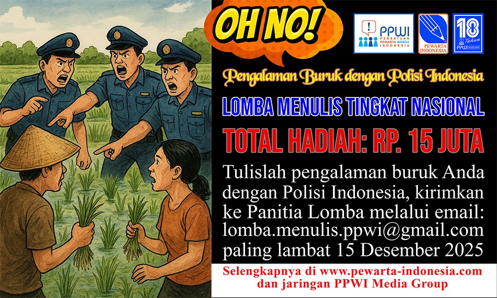 ELTV SATU ||| Jakarta – Panitia Lomba Persatuan Pewarta Warga Indonesia (PPWI) mengumumkan perpanjangan waktu pengiriman naskah lomba menulis tingkat nasional bertema “Pengalaman Buruk dengan Polisi Indonesia” hingga 15 Desember 2025. Semula, batas waktu pengiriman karya dijadwalkan berakhir pada Sabtu, 31 Oktober 2025. Namun, panitia memutuskan untuk memperpanjang masa pengumpulan selama satu setengah bulan ke depan.